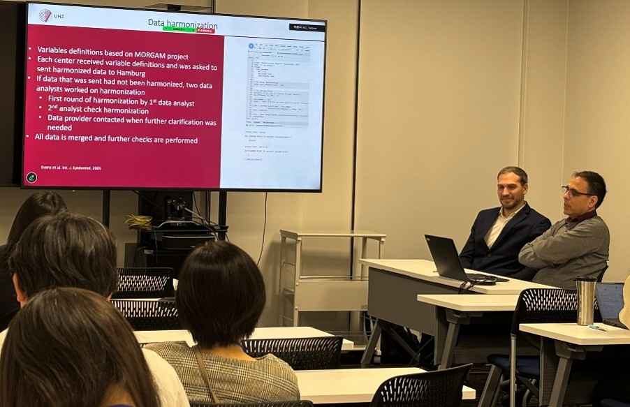 | Following the ACC Workgroup Meeting, we visited the National Cancer Center Japan in Tokyo, where we gave a special seminar presenting six years of work on chronic diseases within the Global Cardiovascular Risk Consortium. In addition to the seminar, we had the opportunity to gain deeper insights into the infrastructure and long-term development of the Asia Cohort Consortium and to exchange experiences on the challenges and opportunities of managing a data center. Our discussions focused in particular on practical aspects of consortium governance, including governance structures, working group organization, and strategies to ensure that research projects progress efficiently and are completed within reasonable timeframes. We exchanged experiences on harmonization approaches and how variable definitions and data structures evolve over time, as well as on the resources required to maintain a sustainable data center infrastructure. Finally, we discussed publication processes and ways to balance open scientific collaboration with transparent project management and fair authorship guidelines. The ACC model of organizing research activities through thematic working groups and holding regular consortium meetings twice per year was impressive and provided valuable insights. The visit included many open and informal discussions that helped our mutual understanding, including a lovely shared lunch... We are very grateful for the openness and generosity with which our colleagues shared their knowledge and experiences, and the visit fortified our scientific exchange for potential future collaborations. We would both like to thank Manami, Yoko, Mayo, Keiko, and Shafiur for their hospitality and kindness. |